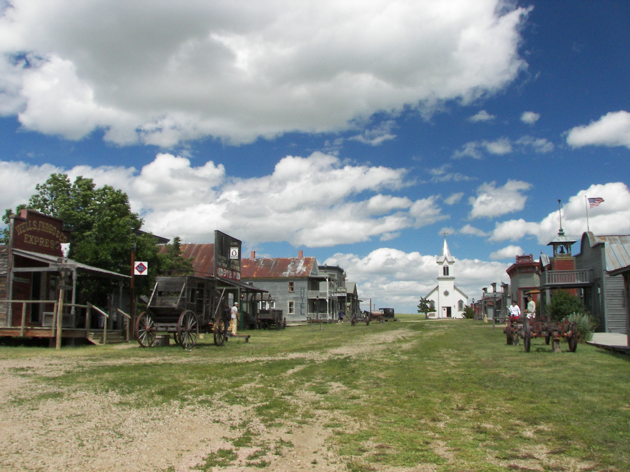 Original 1880 TownThe "Original" 1880 Town is a collection of antique buildings that have been ripped out of their original context and reconstructed together at an interchange 22 miles west of Murdo, SD. They've been modified for child safety and provide the pretext for a self-contained petting zoo complete with costumed wranglers. On the plus side visitors may rent their own costumes to indulge the whole family in an orgy of photo ops.