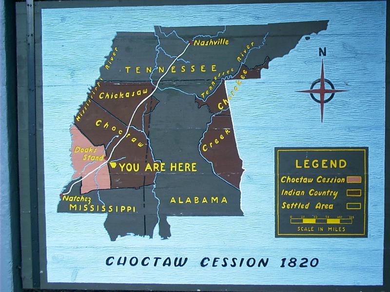 Many Indians in the southeastern US moved to Indian Territory in what is now Oklahoma. Many, including those who became or were already tenants of whites, did not. Trees still mark the line of an old fence row along the border of the Cession. |