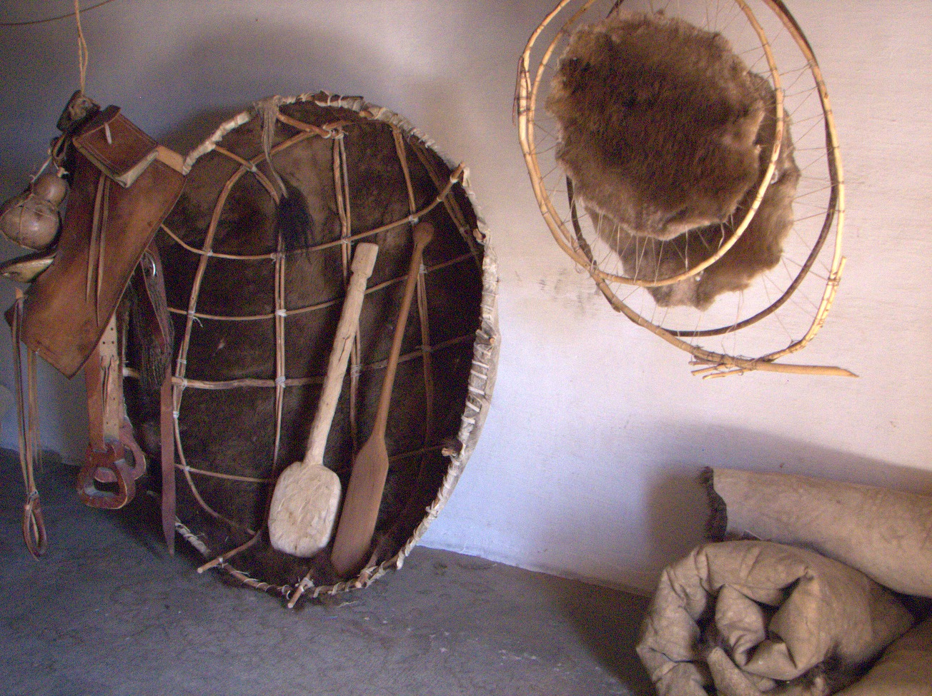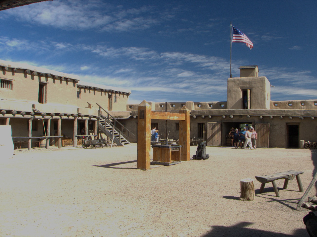 The Stars and Stripes waved here on the north bank of the Arkansas River, which had become part of the United States with the Louisiana Purchase. The land remained unorganized territory until long after Bent's Fort was abandoned. This flag, which has 27 stars, is a replica of the one adopted after the admission of Florida to the Union in March of 1845. It flew briefly until the admission of Texas to the Union in December (Independence Hall Association). The river was the dividing line between various political regimes. In Native American terms, the north bank belonged to the Cheyenne, and the south bank belonged to the Comanche (Wikipedia, William Bent). In Mexican-American terms, the south bank was Mexican territory until Texas won its independence in 1836, after which it was in dispute -- first between the Republic of Texas and Mexico and then between the United States and Mexico after Texas was admitted to the Union in 1845. This dispute was the pretext for the Mexican-American War 1846--1848. The northern border of Texas was moved south -- away from the Arkansas River -- when New Mexico Territory was organized as part of the Compromise of 1850 (Wikipedia, Territorial Evolution of the United States).