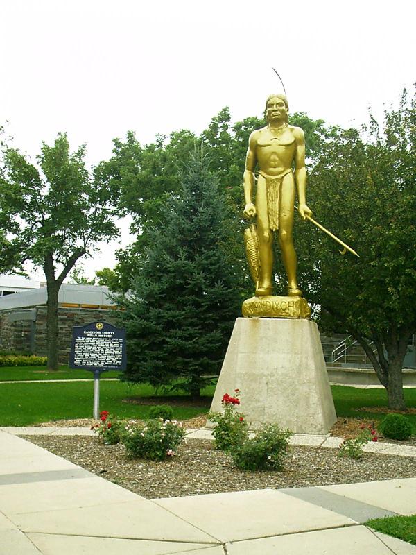 Statue: Chief Kandiyohi Catches Buffalo Fish with a Peavey