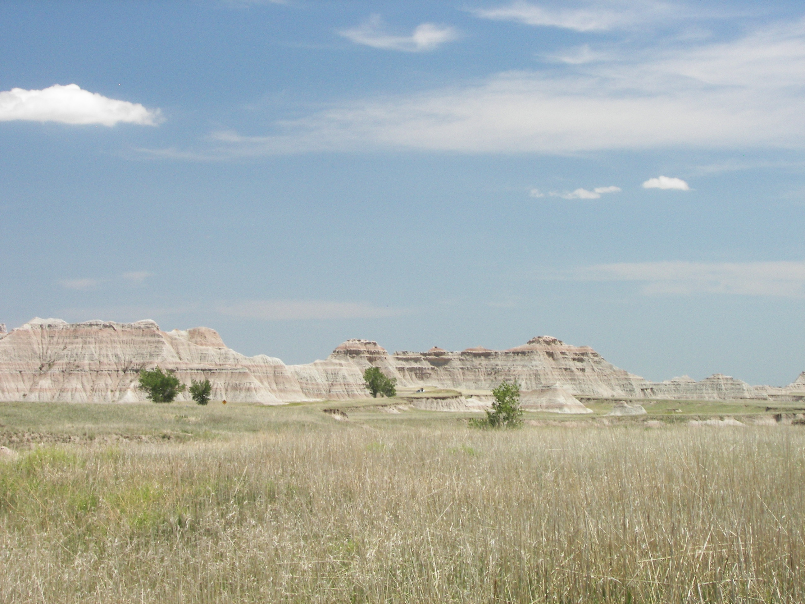 Yellow Mounds"The sea drained away with the uplift of the Black Hills and Rocky Mountains, exposing the black ocean mud to air. Upper layers were weathered into a yellow soil, called Yellow Mounds. The mounds are an example of a fossil soil, or paleosol. "Erosion began in the Badlands about 500,000 years ago when the Cheyenne River captured streams and rivers flowing from the Black Hills into the Badlands region. Before 500,000 years ago, streams and rivers carried sediments from the Black Hills, building the rock layers we see today. Once the Black Hills streams and rivers were captured, erosion dominated over deposition. Modern rivers cut down through the rock layers, carving fantastic shapes into what had once been a flat floodplain."